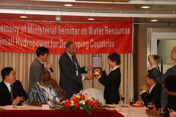 巴基斯坦水电部辅秘副部级官员哈密德·阿里·汉向先生我中心赠送了友谊纪念品